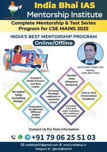 We at India Bhai IAS Mentorship Institute has launched our flagship Complete Mentorship Program (Mains) (since 2016) which is amalgamation of Test Series, Mentorship and Hand Holding program. This is the only unique program which provides all sorts of solutions to all problems/issues related to UPSC Mains & Prelims preparation. Some of the unique feature of the program includes: